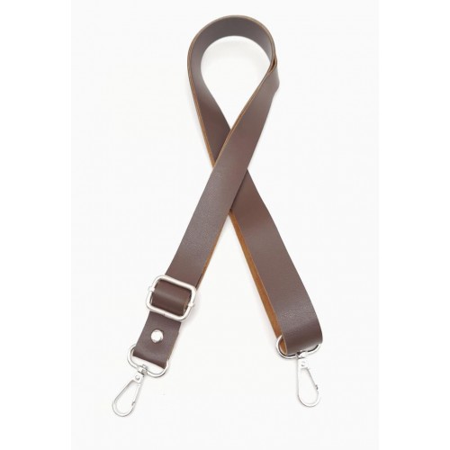 Çanta Aksesuar Suni Deri Ayarlı Çanta Sapı 120X2.4 Cm Kahverengi Gümüş Metal