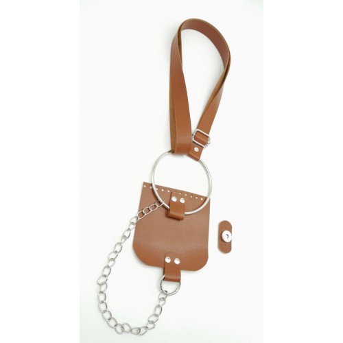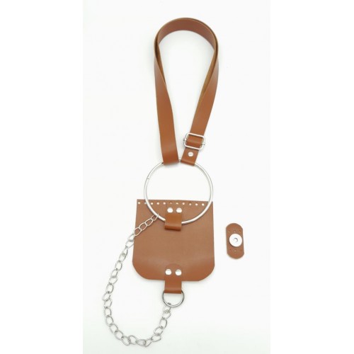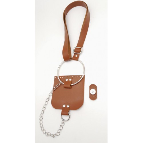 Çanta Aksesuar Taba Suni Deri Halkalı Model Kapaklı Set Gümüş Metalli