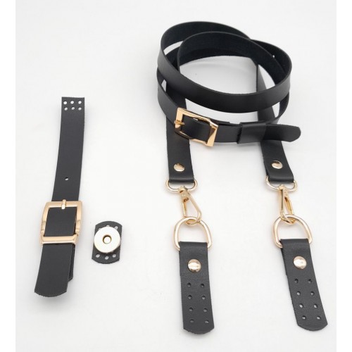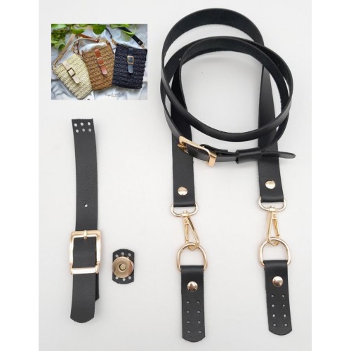 Çanta Aksesuar Siyah Tek Kat Suni Deri Çanta Seti Light Gold Metalli