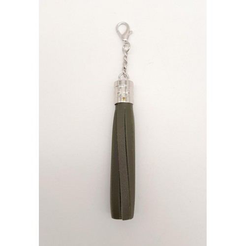 Çanta Aksesuar Haki Suni Deri Kovanlı Püskül Gümüş Metalli