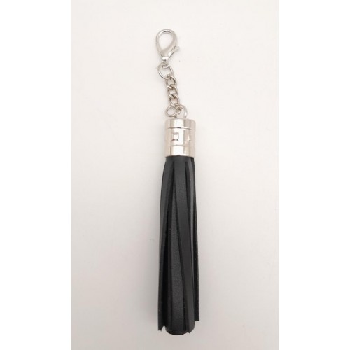 Çanta Aksesuar Siyah Suni Deri Kovanlı Püskül Gümüş Metalli