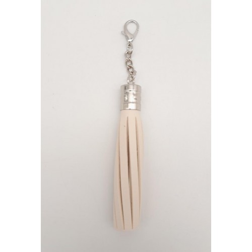 Çanta Aksesuar Krem Suni Deri Kovanlı Püskül Gümüş Metalli