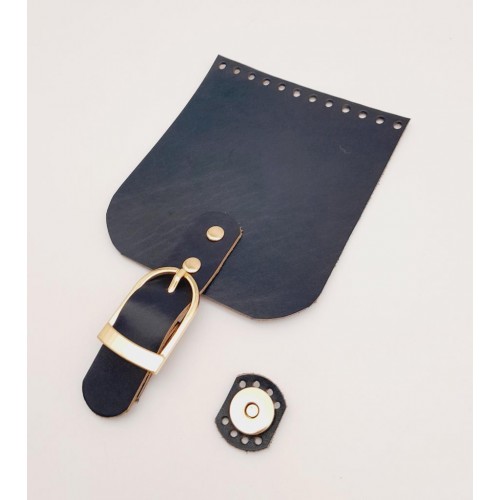 Çanta Aksesuar Gerçek Deri 21x12 cm Lacivert Renk Çanta Kapağı Light Gold Metalli
