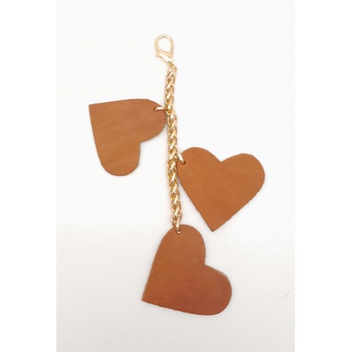 Çanta Aksesuar Taba Gerçek Deri Kalpli Süs Püskül Light Gold Zincirli