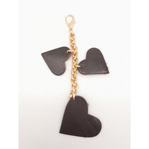 Çanta Aksesuar Kahverengi Gerçek Deri Kalpli Süs Püskül Light Gold Zincirli