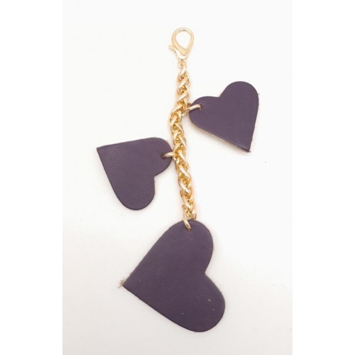 Çanta Aksesuar Mor Gerçek Deri Kalpli Süs Püskül Light Gold Zincirli