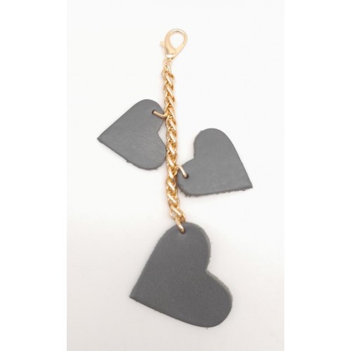 Çanta Aksesuar Gri Gerçek Deri Kalpli Süs Püskül Light Gold Zincirli