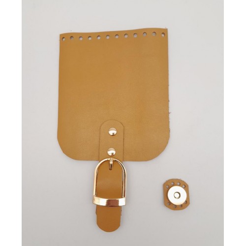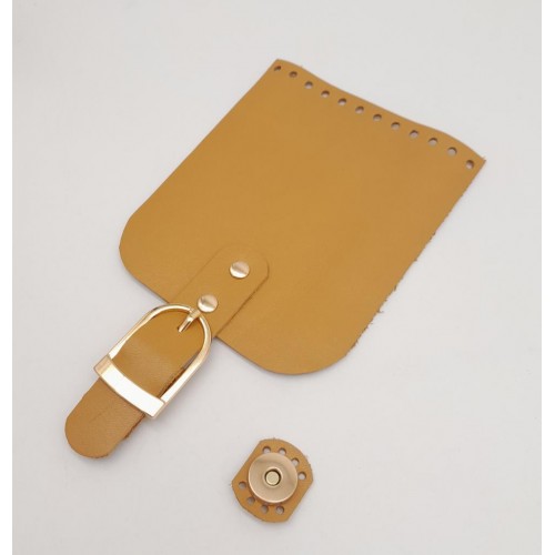 Çanta Aksesuar Gerçek Deri 21x12 cm Hardal Renk Çanta Kapağı Light Gold Metalli