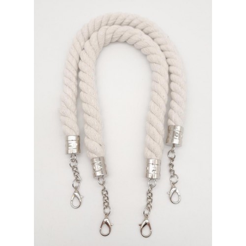 Çanta Aksesuar 50 cm Pamuklu Halat Model Çift Çanta Sapı Gümüş Metalli
