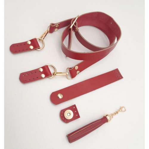 Çanta Aksesuar Kırmızı Gerçek Deri 130x2.3 cm Ayarlı Saplı Püsküllü Çanta Seti Light Gold Metalli