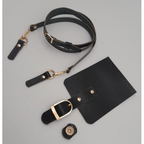 Çanta Aksesuar Siyah Gerçek Deri 130x1.5 cm Ayarlı Saplı Çanta Seti Light Gold Metalli