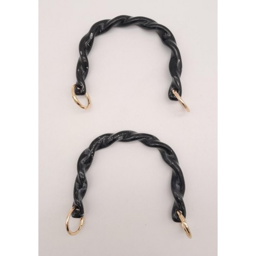 Çanta Aksesuar 13 cm Burgu Model Siyah Renk Yaylı Halkalı Akrilik Çanta Sapı