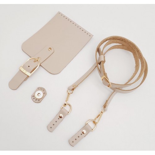 Çanta Aksesuar Bej Gerçek Deri 130x1.5 cm Ayarlı Saplı Çanta Seti Light Gold Metalli