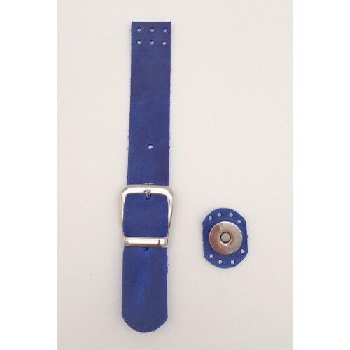 Çanta Aksesuar 18x2,3 cm Crazy Oil Saks Mavi Gerçek Deri Tokalı Çanta Kapağı Gümüş Metalli