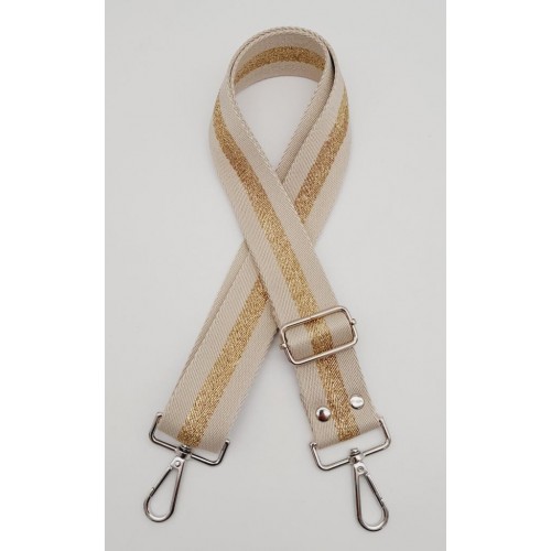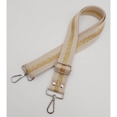 Çanta Aksesuar Polyester Kolon 120X4 Cm Bej Renk Simli Gümüş Metalli