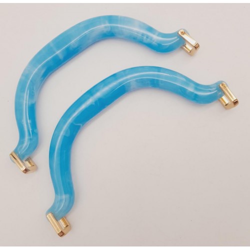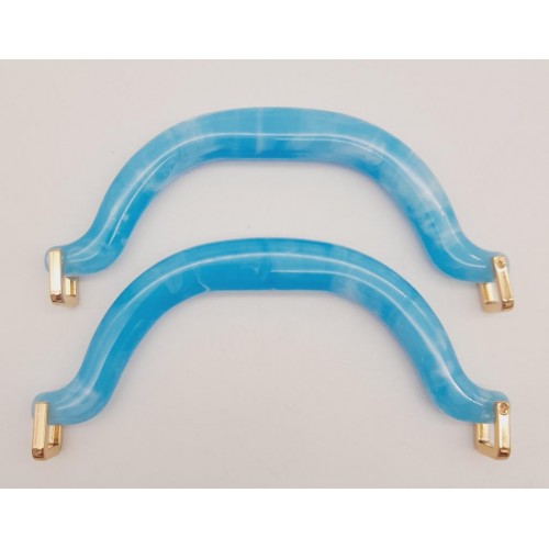 Çanta Aksesuar Akrilik Buz Mavi Renk Mermer Desen Light Gold Halkalı Çanta Tutma Sapı