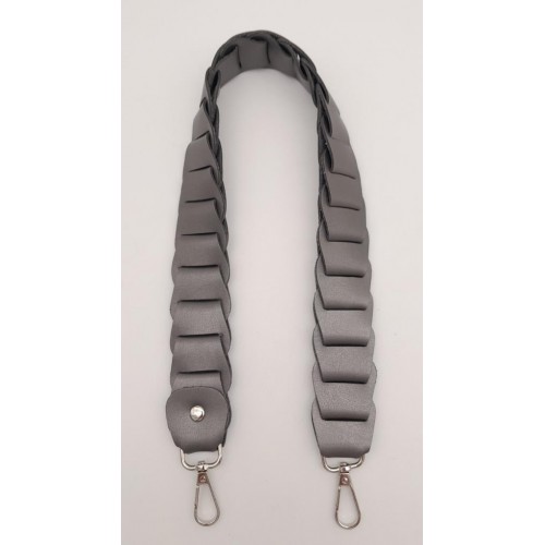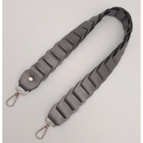 Çanta Aksesuar 62 cm Yassı Örgü Model Suni Deri Gri Çanta Sapı Gümüş Metalli