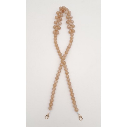 Çanta Aksesuar 80 cm Kancalı Vizon Renk İncili Akrilik Zincir Light Gold Metalli