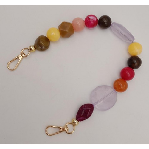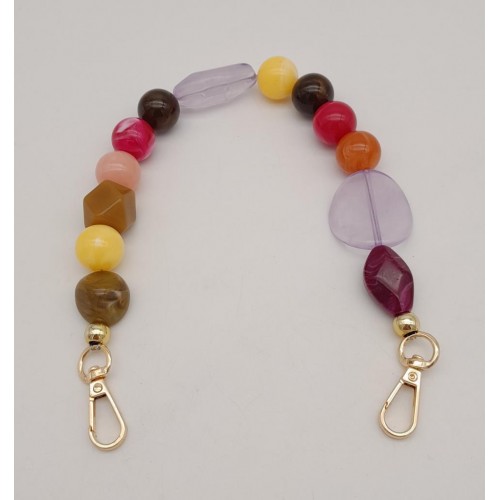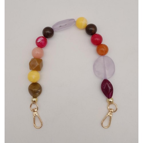 Çanta Aksesuar 39 cm Kancalı Renkli Akrilik Zincir Light Gold Metalli