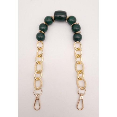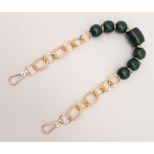 Çanta Aksesuar 42 cm Kancalı Koyu Yeşil Renk Akrilik Zincir Light Gold Metalli