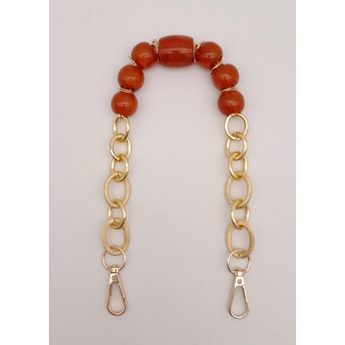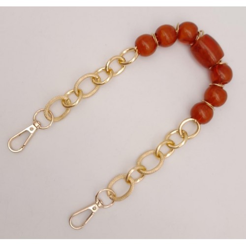 Çanta Aksesuar 42 cm Kancalı Kehribar Renk Akrilik Zincir Light Gold Metalli
