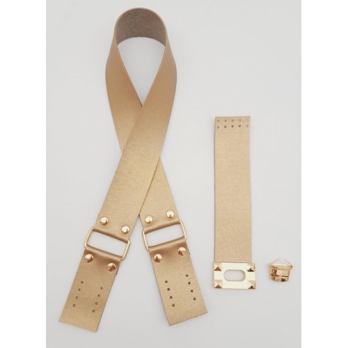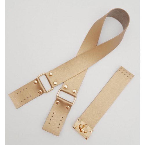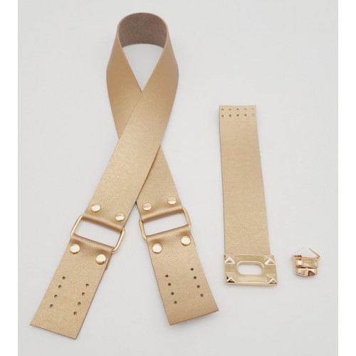 Çanta Aksesuar 70x4 cm Suni Deri Çanta Saplı Kapaklı Gold Renk Çanta Seti Light Gold Metalli
