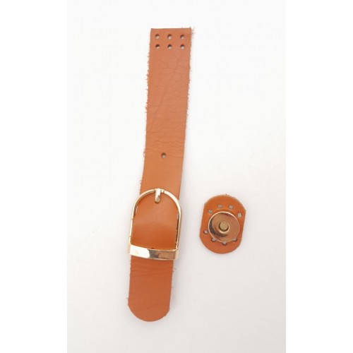 Çanta Aksesuar 18x2.3 cm Turuncu Taba Gerçek Deri Tokalı Çanta Kapağı Light Gold Metalli