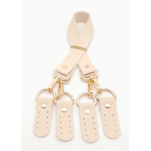 Çanta Aksesuar Suni Deri 55 Cm Misu Model Çift Sap Krem Renk Light Gold Metal