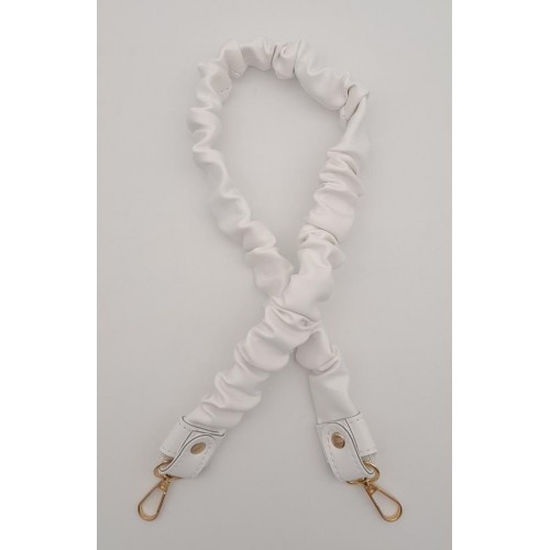 Çanta Aksesuar 70 cm Büzgü Model Suni Deri Beyaz Renk Çanta Sapı Light Gold Metalli
