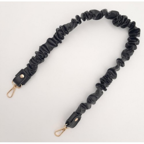 Çanta Aksesuar 70 cm Büzgü Model Suni Deri Siyah Renk Çanta Sapı Light Gold Metalli