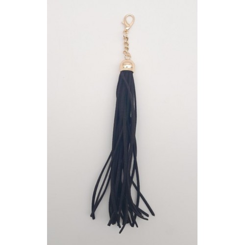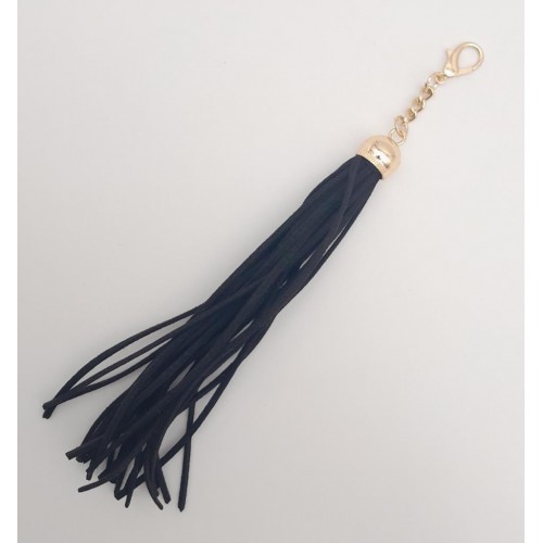 Çanta Aksesuar Süet Nubuk Deri Kovanlı Uzun Püskül Siyah Renk Light Gold Metalli