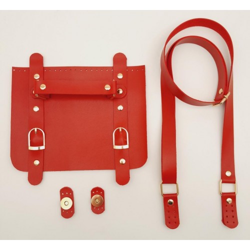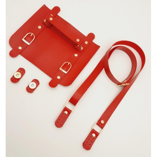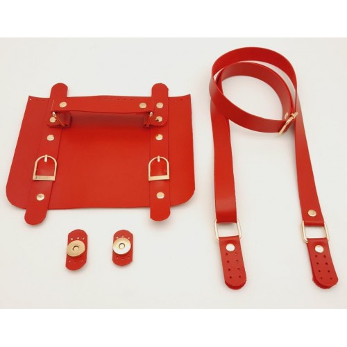 Çanta Aksesuar Suni Deri Çift Tokalı Ayarlı Saplı Kırmızı Renk Çanta Deri Seti Light Gold Metalli