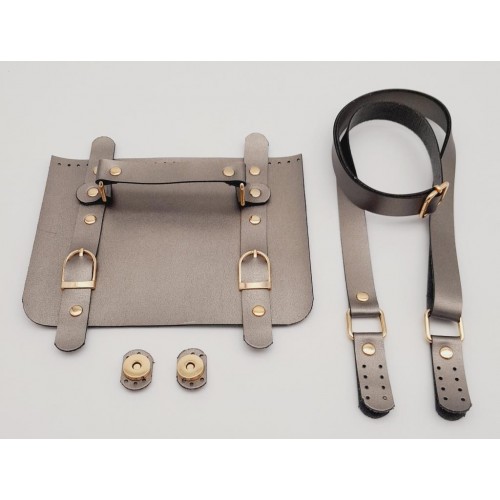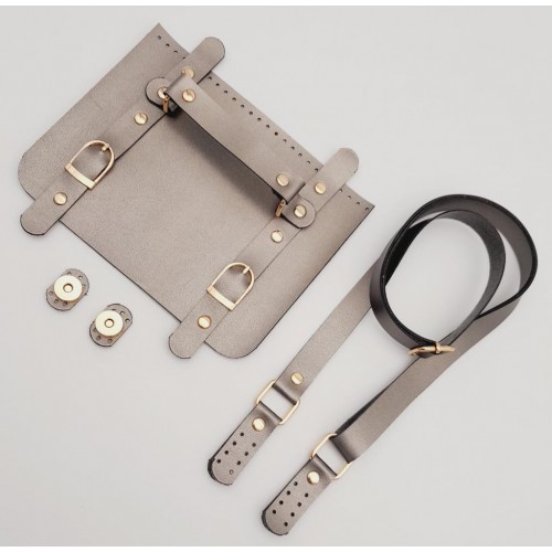 Çanta Aksesuar Suni Deri Çift Tokalı Ayarlı Saplı Parlak Gri Renk Çanta Deri Seti Light Gold Metalli