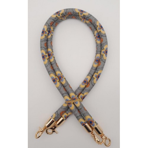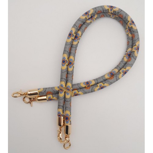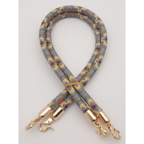 Çanta Aksesuar Çift Kordon Çanta Sapı Gri Turuncu Çiçekli Light Gold Metalli
