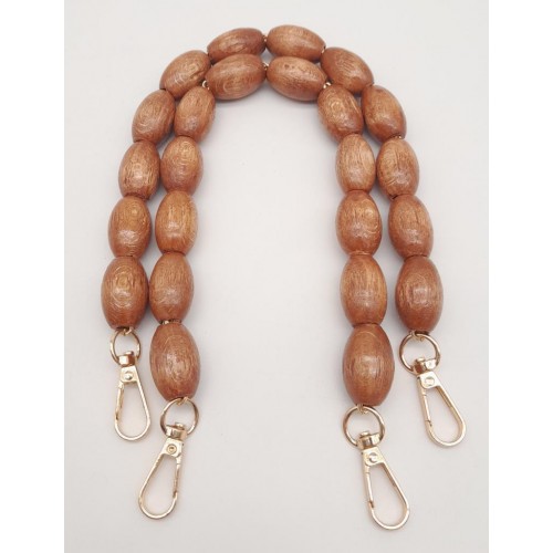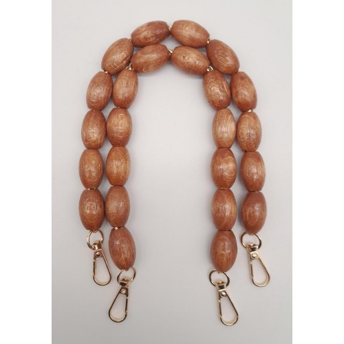 Çanta Aksesuar 40 cm Ahşap Oval Boncuklu Taba Renk Kancalı Çift Sap Light Gold Metalli