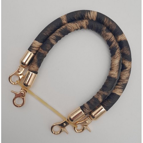 Çanta Aksesuar Çift Kısa Kordon Çanta Sapı Leopar Light Gold Metalli