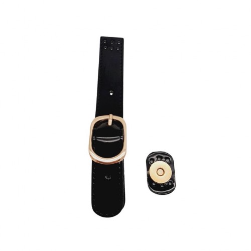 Çanta Aksesuar Rugan Deri 18 cm Tokalı Çanta Kapağı Siyah Renk Light Gold Metalli