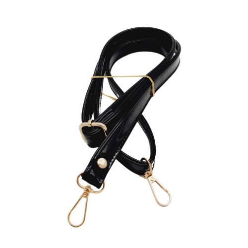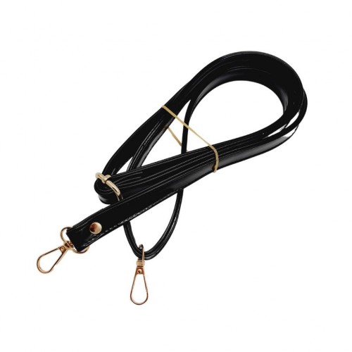Çanta Aksesuar Rugan Deri 125x2 cm Sürgütlü Siyah Renk Çanta Sapı Light Gold Metalli