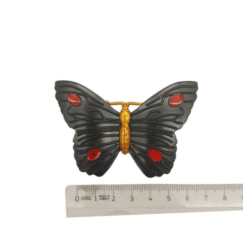Çanta Aksesuar Kelebek Model Siyah Renk Plaka Süs