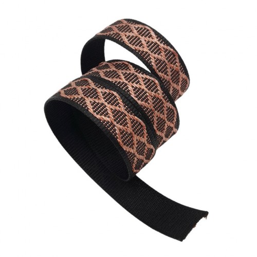 Çanta Aksesuar 3 cm Polyester Kolon Siyah Pembe Simli 1 Metre