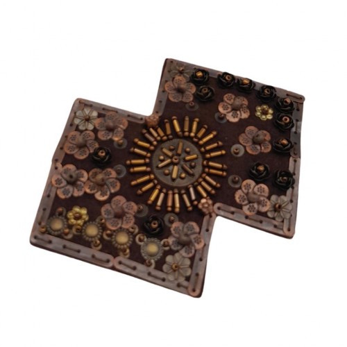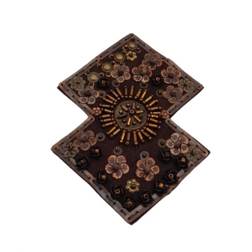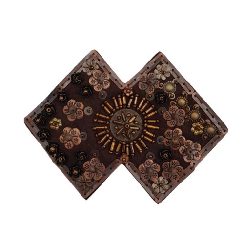 Çanta Aksesuar Çanta Aksesuar Boncuk İşlemeli Derili Çift Kare Model Otantik Süs 1 Adet