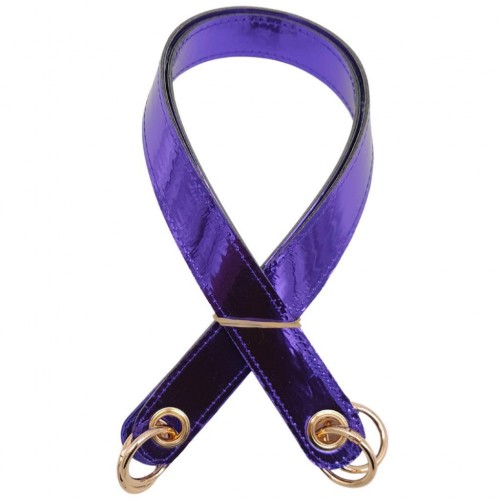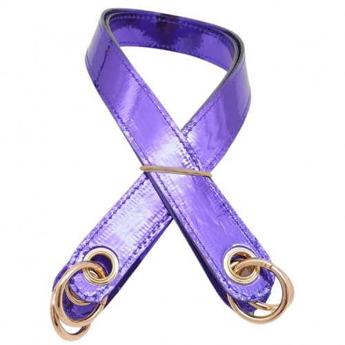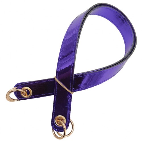 Çanta Aksesuar Parlak Rugan Deri Kuş Gözlü Çift Çanta Sapı Mor Renk Light Gold Metalli