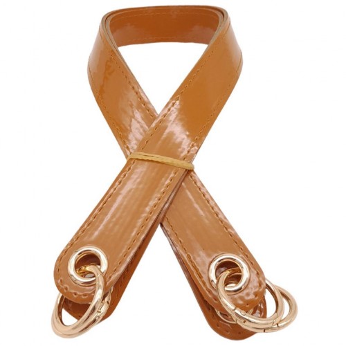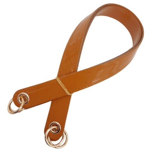 Çanta Aksesuar Parlak Rugan Deri Kuş Gözlü Çift Çanta Sapı Açık Taba Renk Light Gold Metalli
