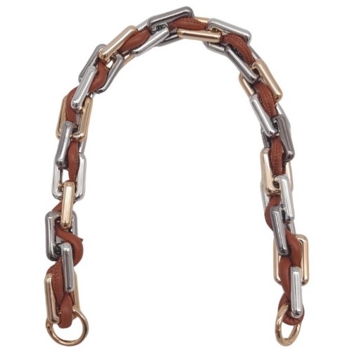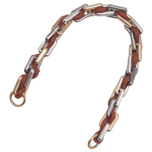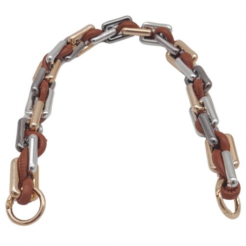 Çanta Aksesuar 45 cm Derili Köşeli Renkli Akrilik Zincir Taba Renk Derili Yaylı Halkalı