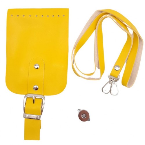 Çanta Aksesuar Tokalı Kapak Aparatlı Suni Deri Çanta Seti Sarı Renk