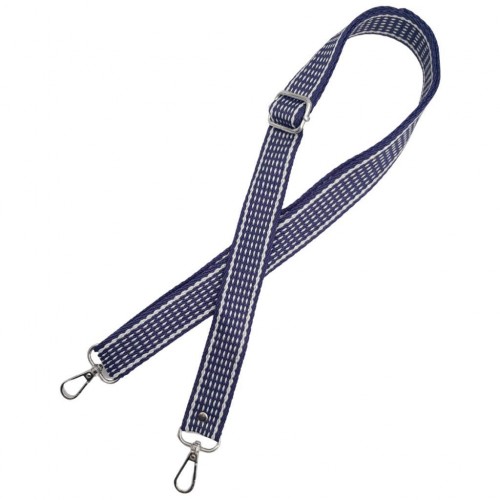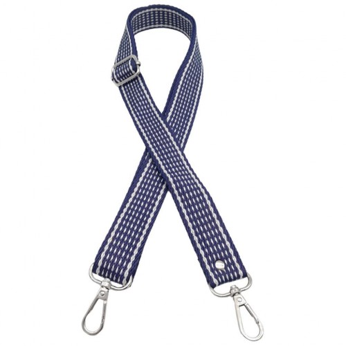 Çanta Aksesuar 120x3 cm Polyester Kolon Çanta Sapı Lacivert Renk Beyaz Şeritli Gümüş Metalli