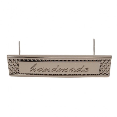 Çanta Aksesuar Handmade Yazılı Metal Etiket 4x1 cm Plaka Süs Gümüş Renk