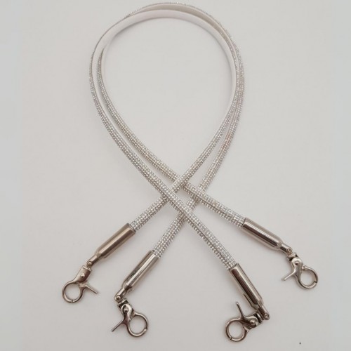 Çanta Aksesuar Taşlı Kancalı Kovanlı Çift Çanta Sapı Gümüş Renk