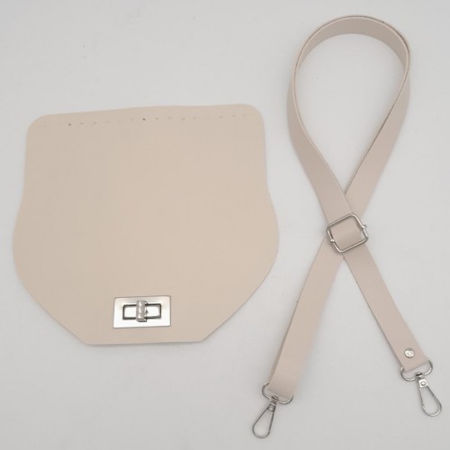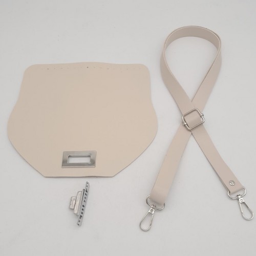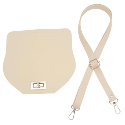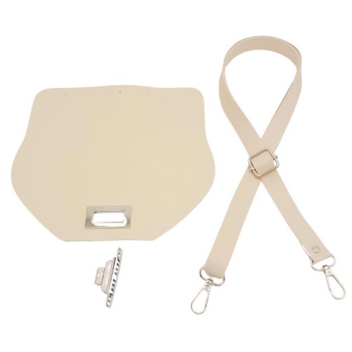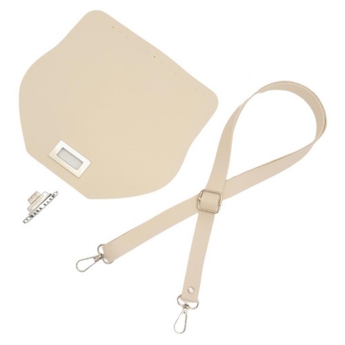 Çanta Aksesuar Suni Deri 21x19 cm Kapaklı ve Ayarlı Saplı Çanta Seti Krem Renk Gümüş Metalli