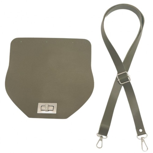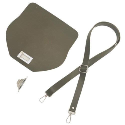 Çanta Aksesuar Suni Deri 21x19 cm Kapaklı ve Ayarlı Saplı Çanta Seti Haki Renk Gümüş Metalli